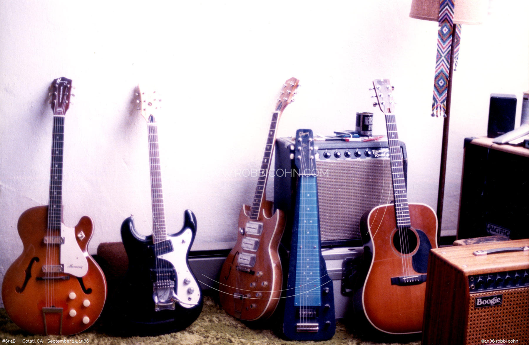 Several instruments in the Steve Kimock collection, circa 1986.